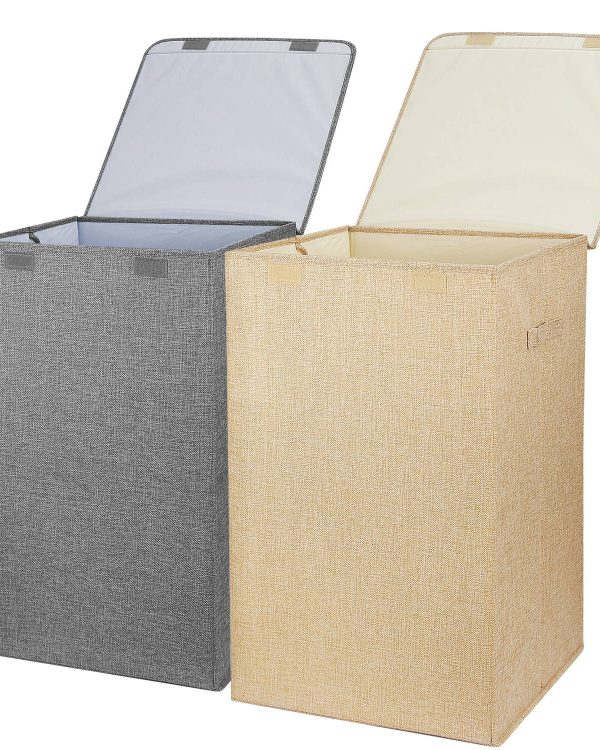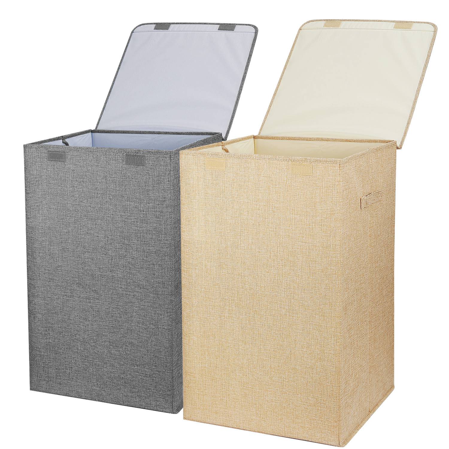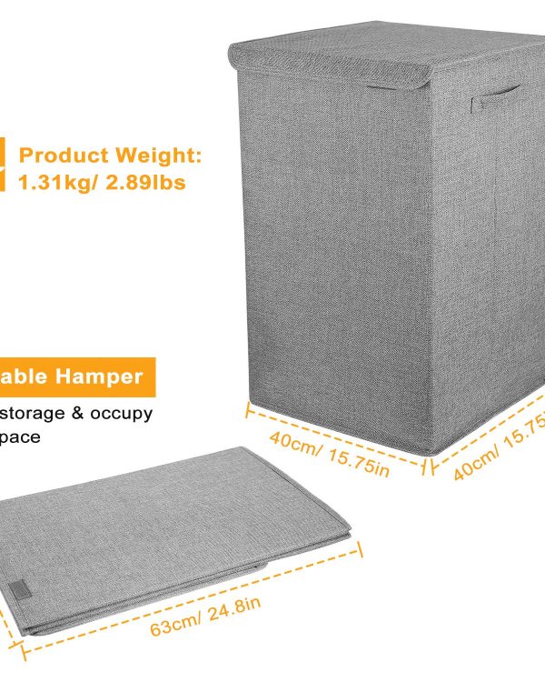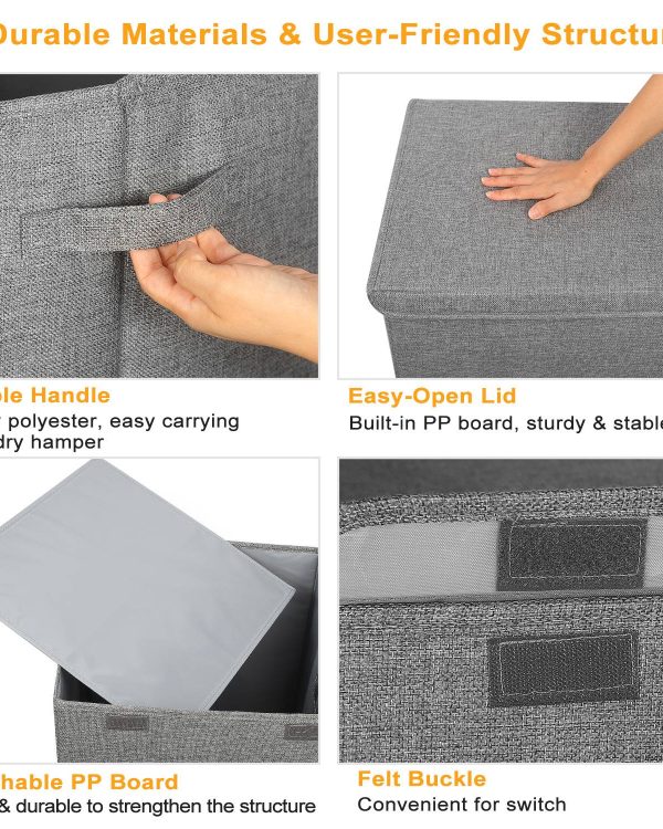 **DURABLE HANDLE & EASY-OPEN HAMPER LID*:Two soft yet strong polyester handles on the sides of this laundry hamper,which makes it easy for you to pull it up and down stairs even the hamper is full of clothes. The hamper lid with felt buckle is for easy open/close,and helpful to keep dirty clothes out of site while also concealing any smells.
