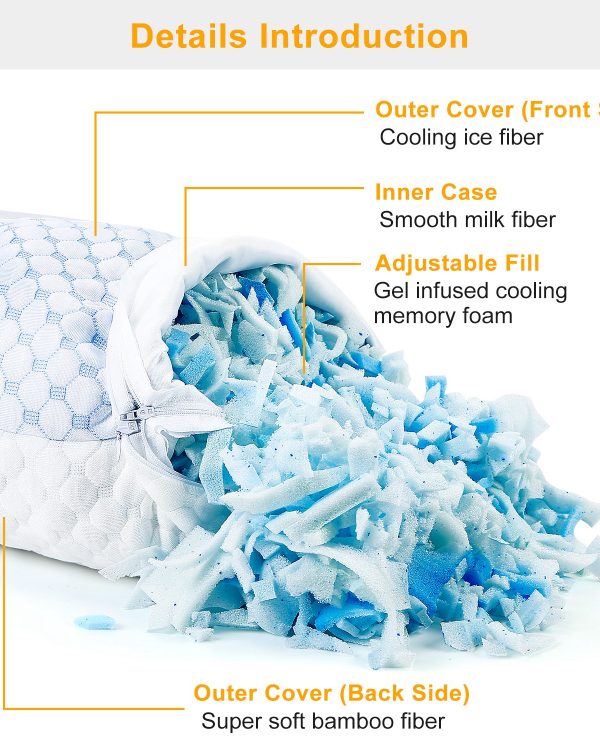 2Pcs Or 1Pc Cooling Memory Foam Pillow Ventilated Soft Bed Pillow With Cooling Gel Infused Memory Foam Machine Washable