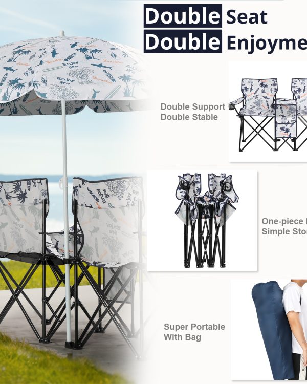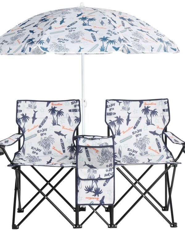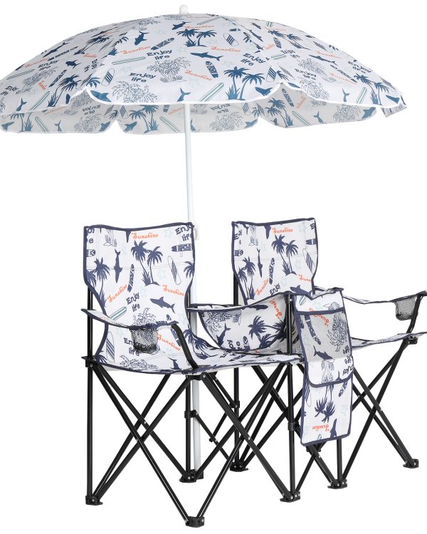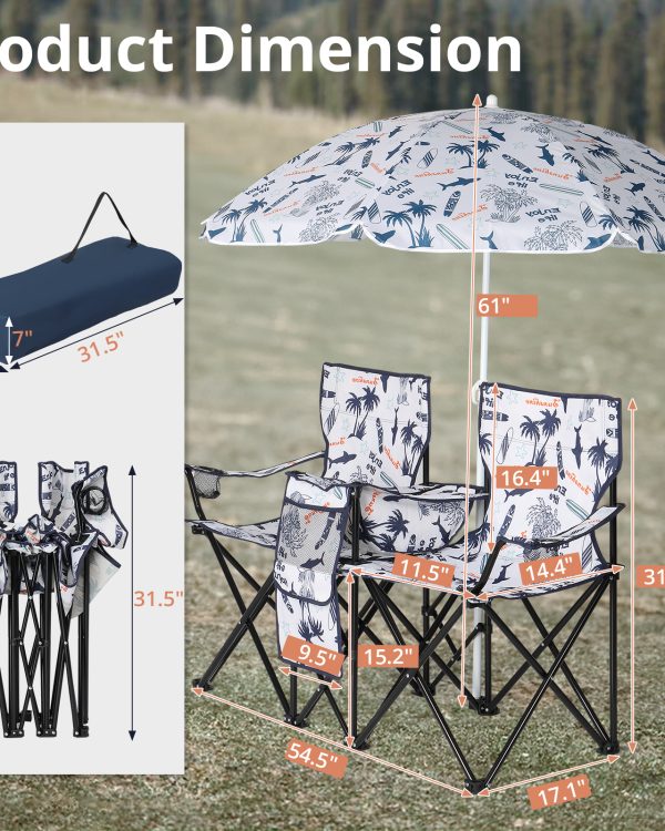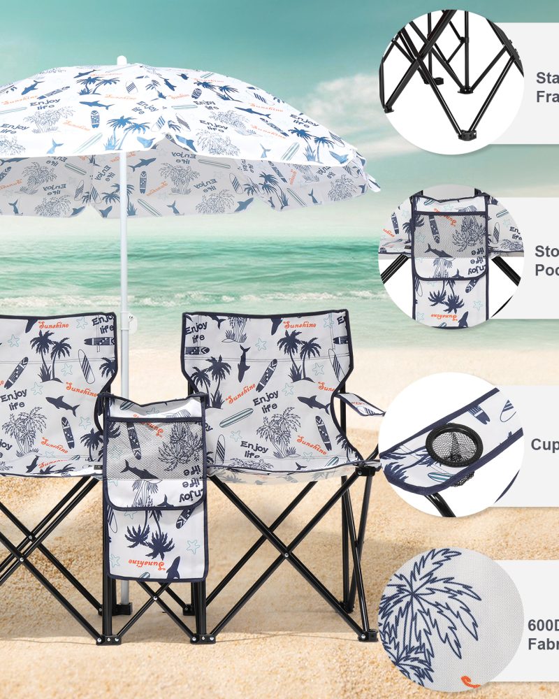 59×19.6x31in, Coconut Tree Pattern, Fishing Chair With Parasol, Camping Chairs