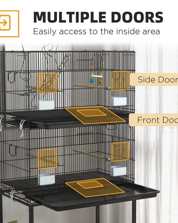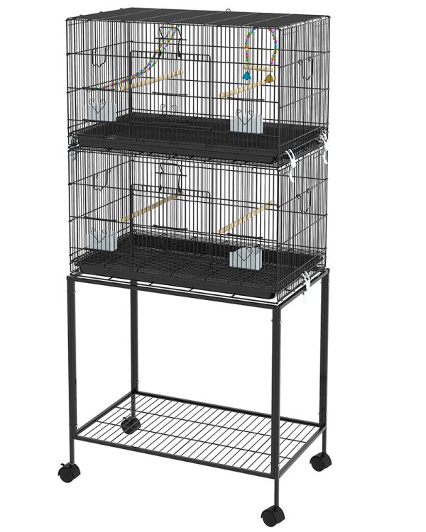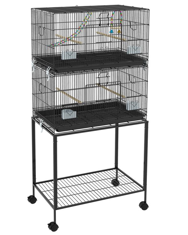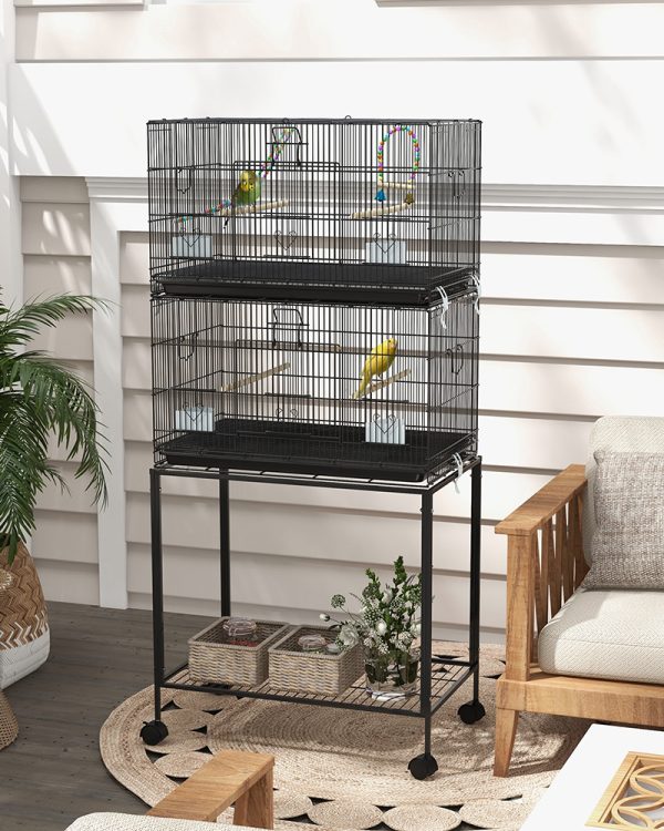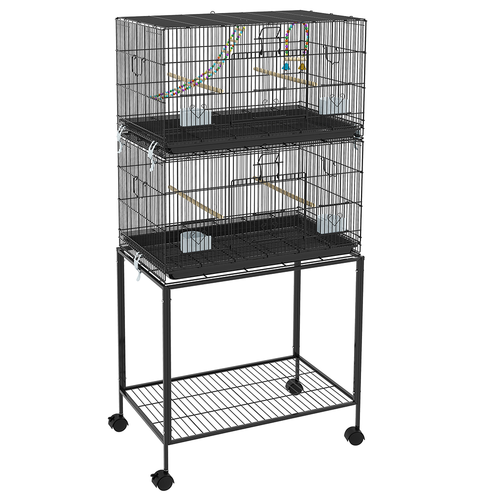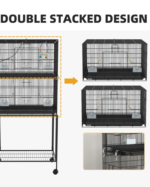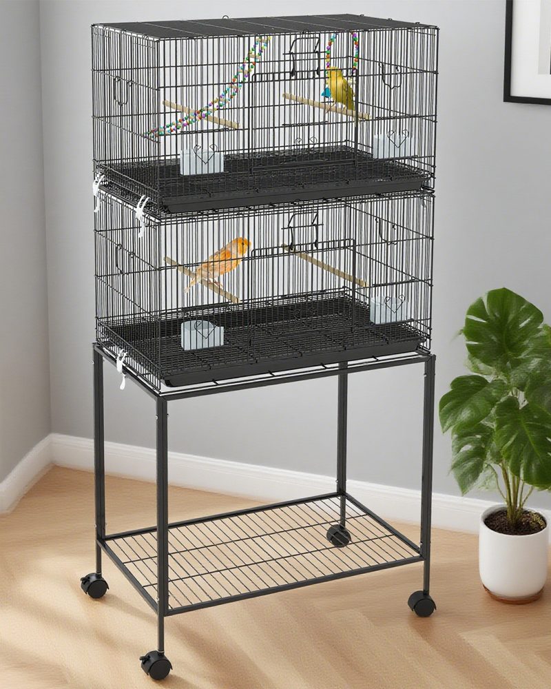 - – Space-Saving Design: Enjoy the benefits of a spacious and versatile large parrot cage. Maximize your space with our stacked two-cage configuration; it allows you to accommodate multiple birds while optimizing floor space.