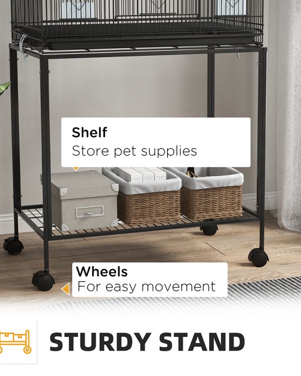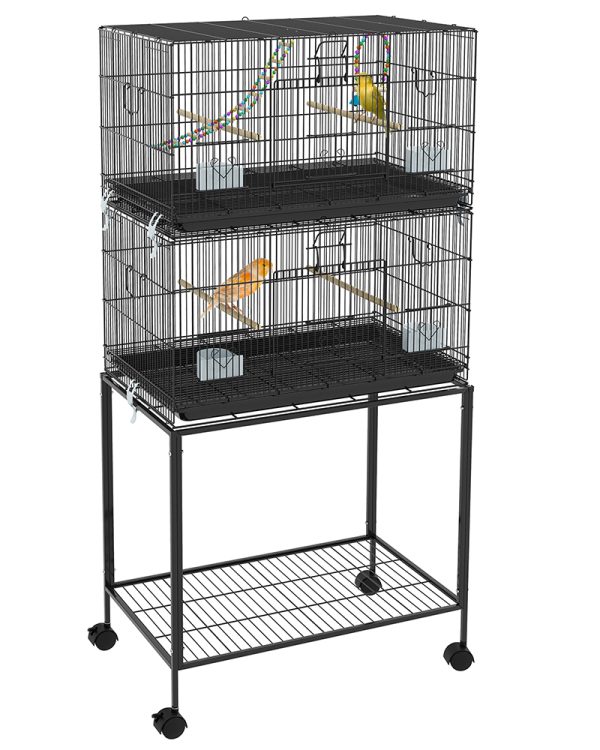 - – Sturdy Construction: With its sturdy steel frame, this canary cage provides a durable home for birds to thrive. With four wheels at the bottom, you can quickly move the flight cage around and then use the two brakes to keep it in place.