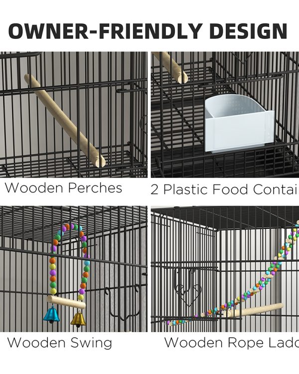 - – Playground Fun: Our bird cage with a stand has a colorful wooden swing and wooden rope ladder to add extra fun for your feathered friend helping you build a sweet, cozy home for them.