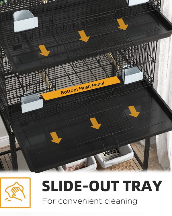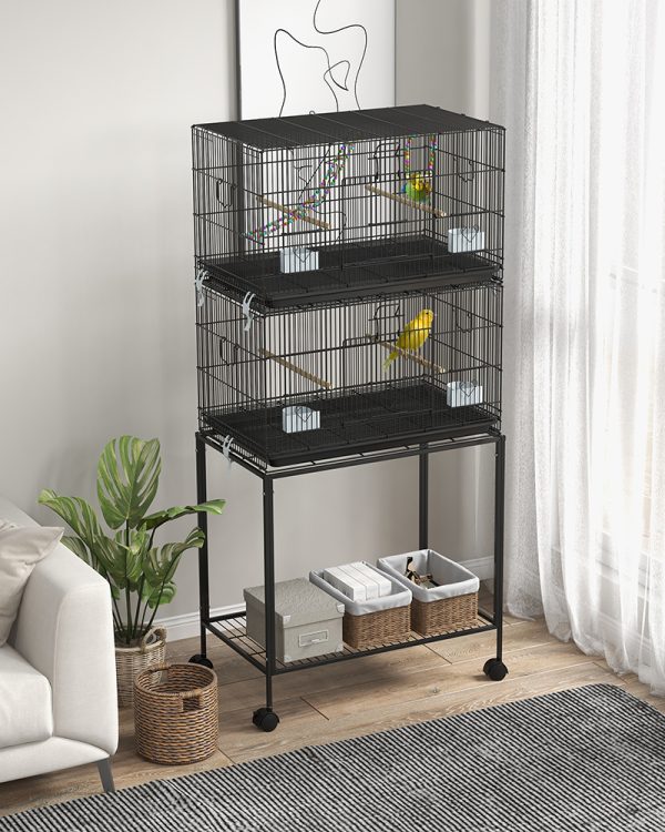 - – Owner-Friendly Finch Cage: Each bird cage has a front door with a small door and two small side doors, so you can easily access and interact with the birds and maintain their space. The doors have locks preventing escape, and the removable tray at the bottom promotes quick cleaning. The bottom shelf provides a convenient place to store pet supplies.