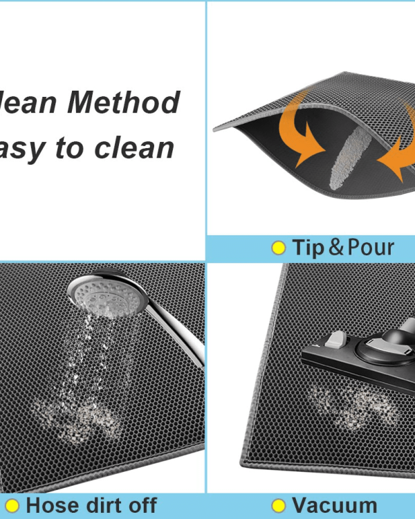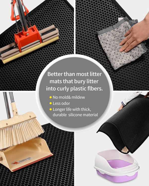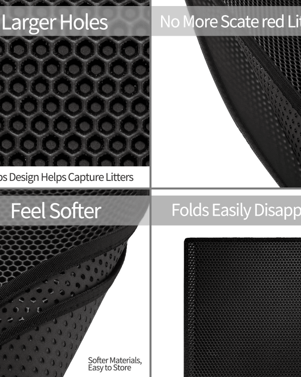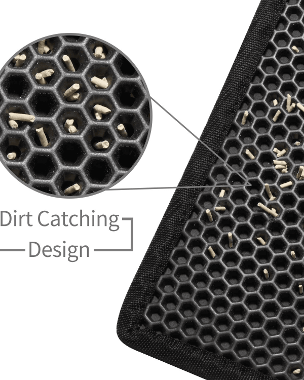 Smart design – With its deep grooves and honeycomb-shaped holes, it traps litter scatter that would otherwise spread on your bare floor, keeping your house mess free.