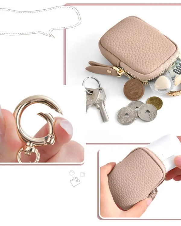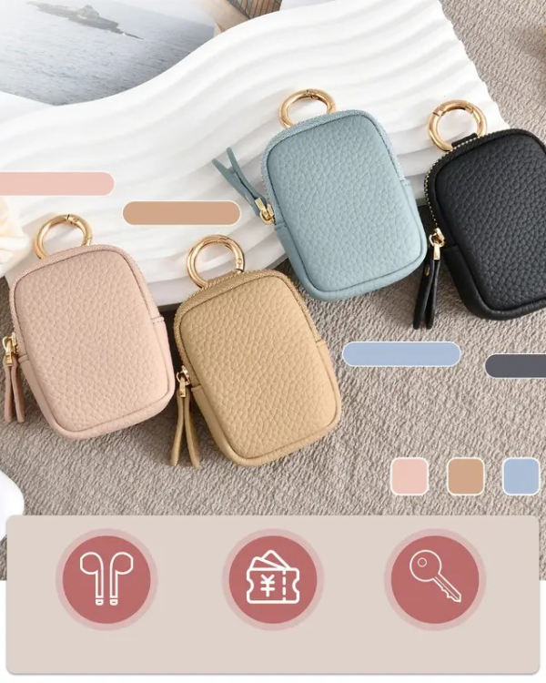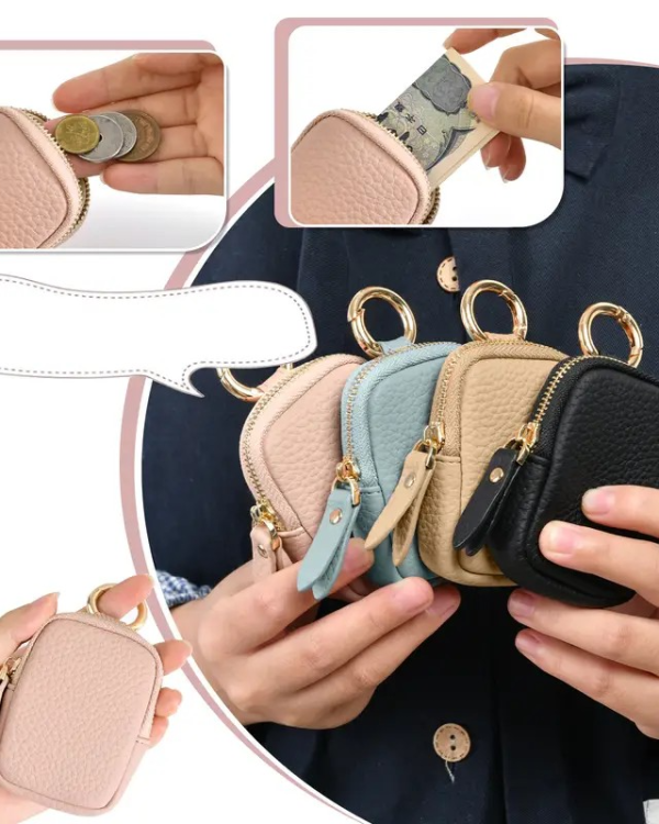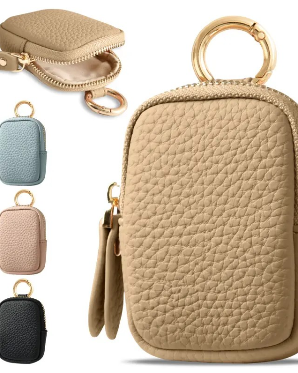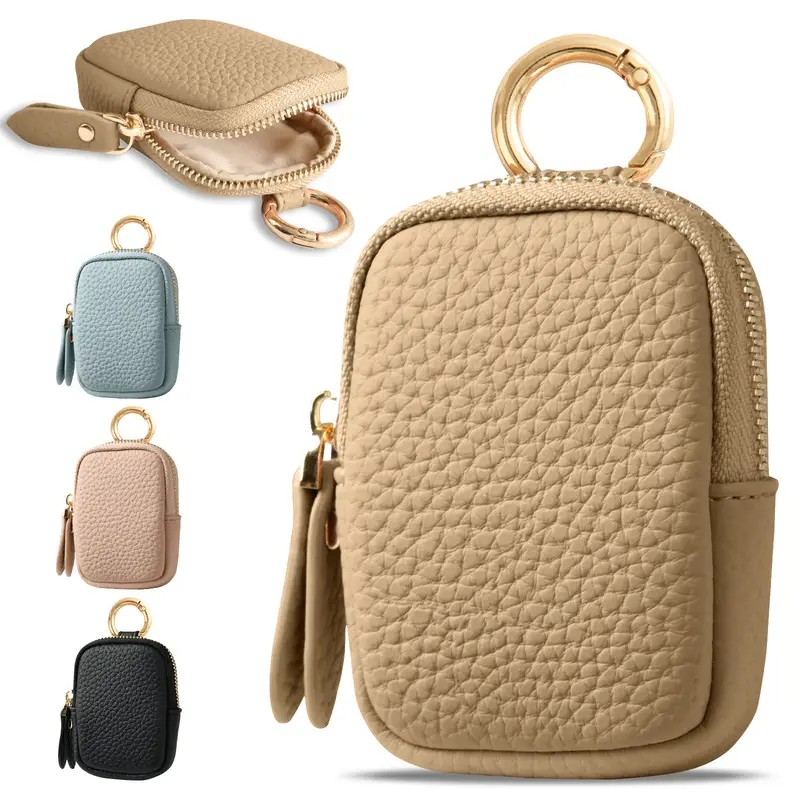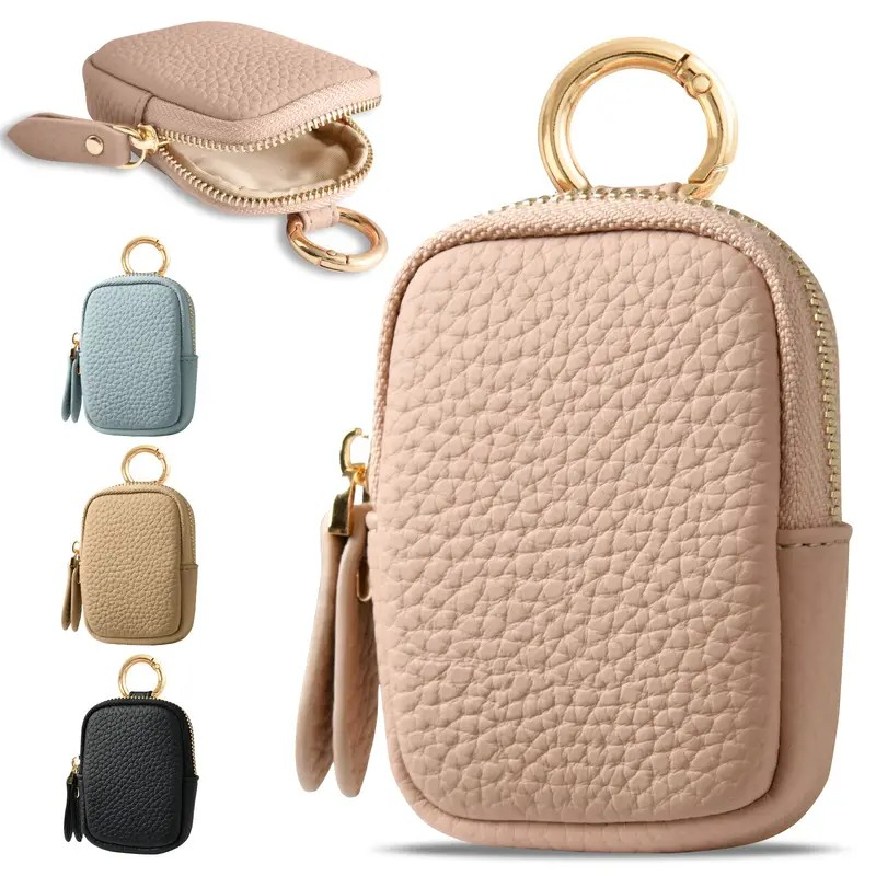 Leather Coin Purse, Small Change Purse Keychain Wallet For Women, Mini Coin Pouch With Zipper