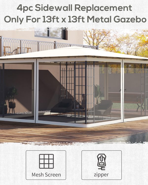 Outsunny 13′ X13′ Replacement Mesh Sidewall Netting For Patio Gazebos And Canopy Tents With Zippers