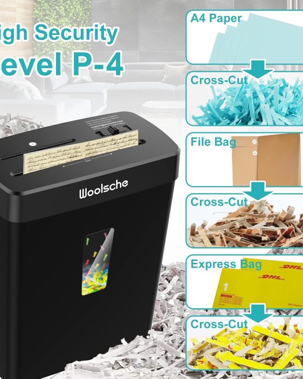Superior security: With a P-4 security level, our shredder ensures that your sensitive information is securely destroyed. The shredded pieces are small enough to provide maximum security, measuring at 5/32 X 1-17/32 inches (4x39mm).