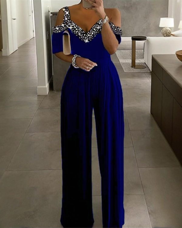Experience effortless elegance in this Rhinestone-Accented Jumpsuit!