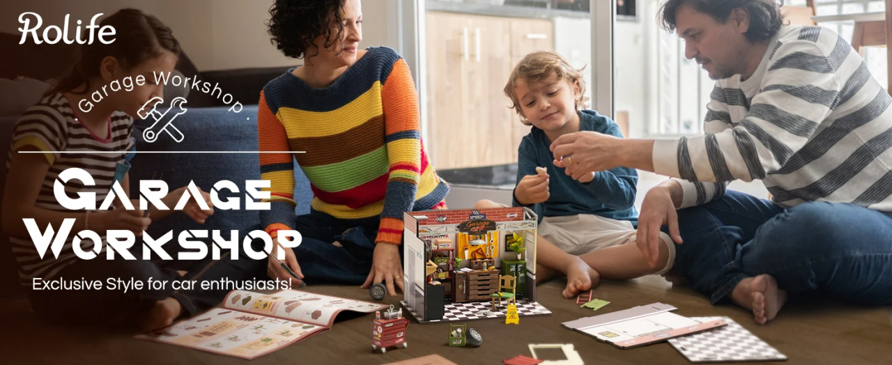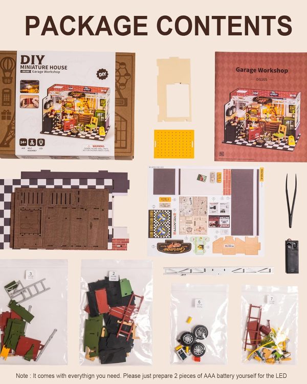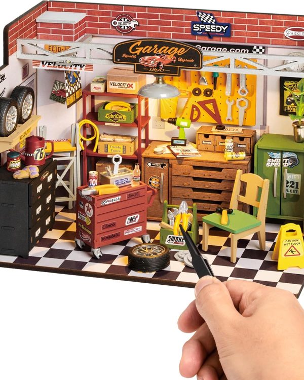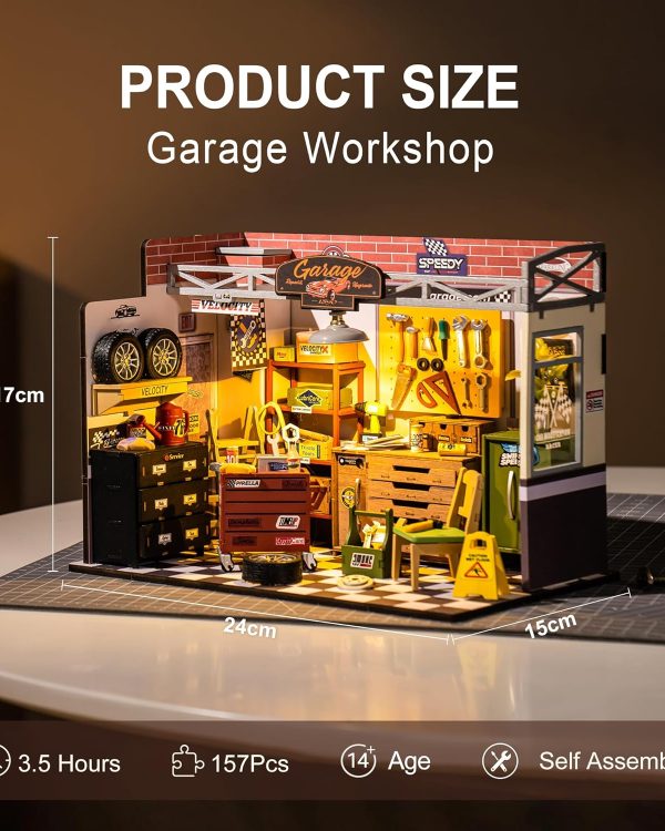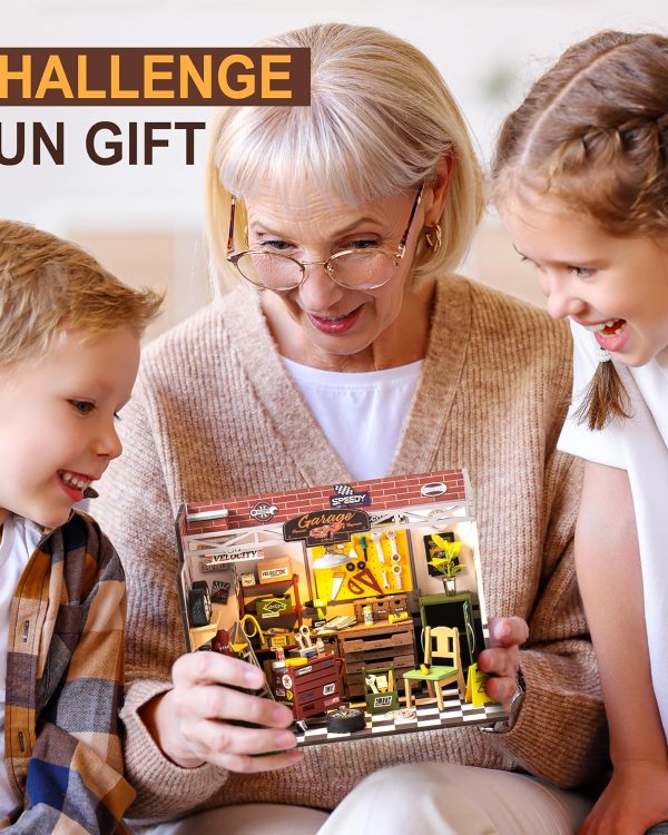 ROBOTIME DIY Miniature House Kit Garage Workshop With Light, Wooden Dollhouse Model Building Kit For Adults And Children, Holiday Birthday Gifts For Boys Girls DG165