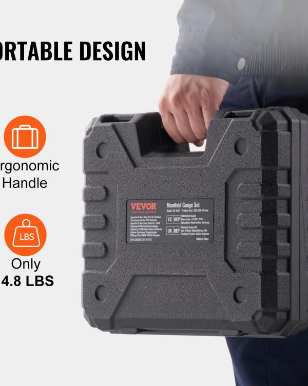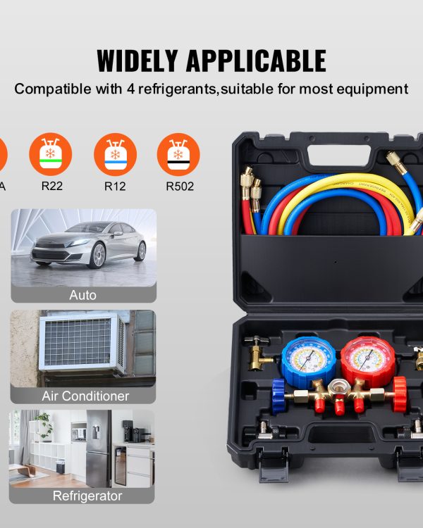 VEVOR AC Gauge Set - 3 Way AC Manifold Gauge Set For R134A R22 R12 R502 Refrigerant, Freon Gauges With 5ft Hoses, Couplers, Can Tap Works On Car Auto Freon Charging And Evacuation